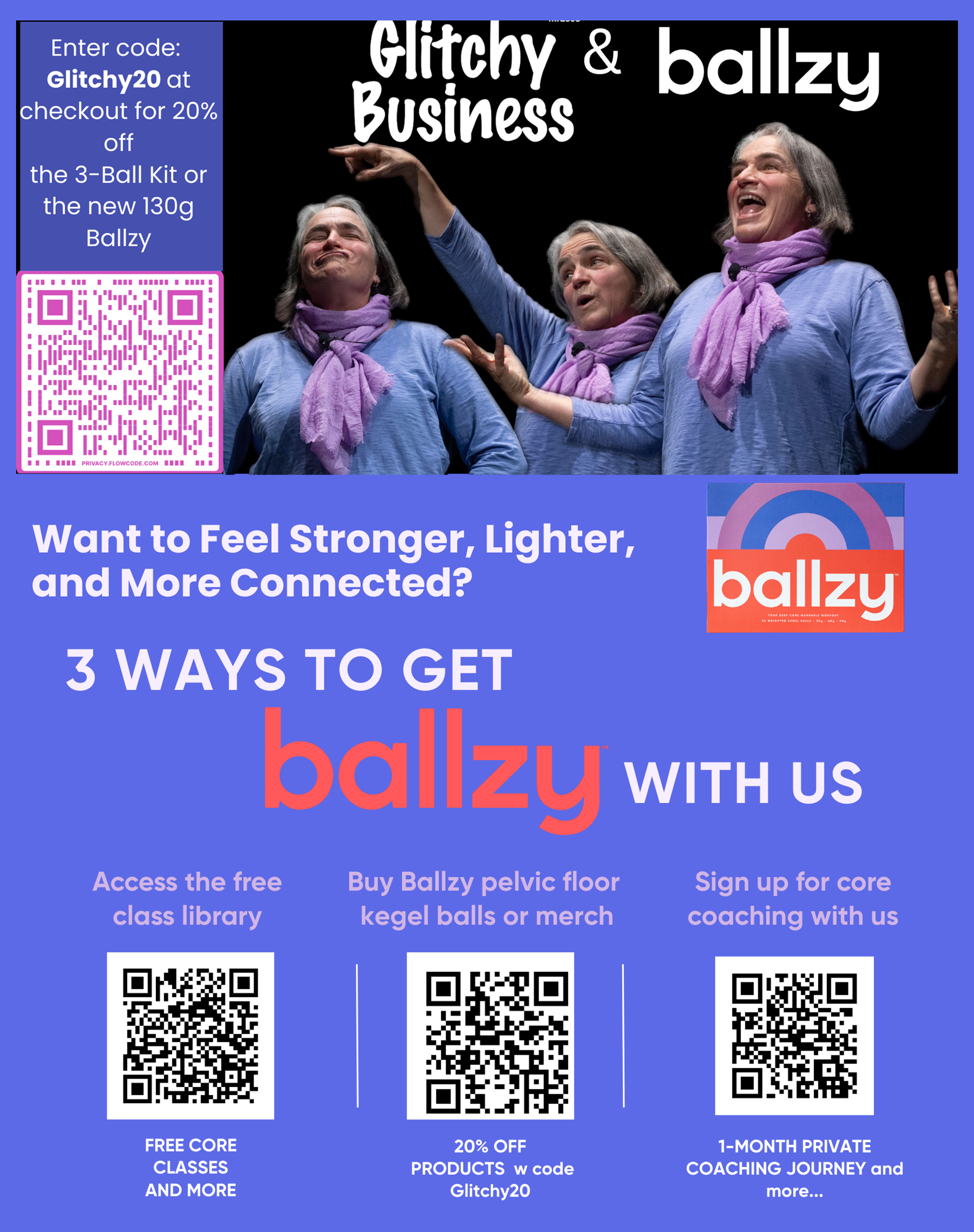 Cindy is collaborating with Ballzy, the complete pelvic floor program that offers weighted Kegel balls and guided training for strength from the inside out. Go to balzycore.com and enter Glitchy20 at checkout for a 20% discount on the 3-Ball-Kit or the new 130g Ballzy.